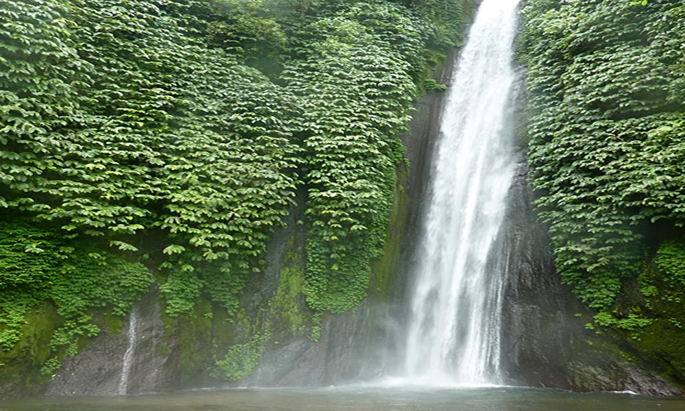 يقع في المنطقة الساحلية الشمالية الشرقية عند الطريق الدائري من قرية ليه ويبلغ ارتفاعه تقريبا 60 متر وهو بذلك أطول الشلالات ارتفاعا في بالى.