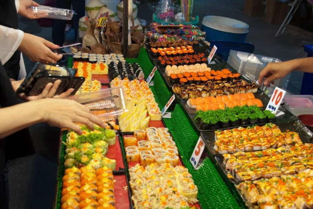 يوجد الكثير من المطاعم المنتشرة في السوق لأخذ قسط من الراحة حيث يقدمون العديد من الأطباق التايلاندية المحلية وتناول المشروبات المفضلة هذه المطاعم مناسبة جدا ً للعائلات المصاحبة للأطفال وكبار السن.