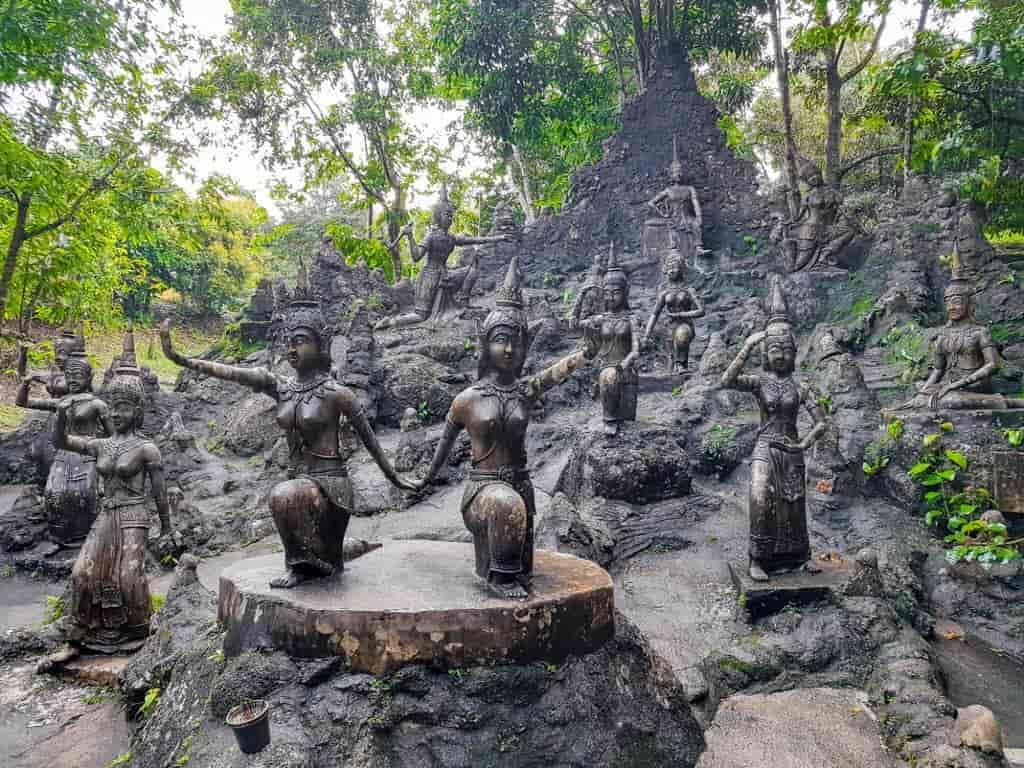 كما يمكنهم الصعود إلى قمة التلال الصغيرة التي توجد في الحديقة ورؤية العديد من المنحوتات من أعلى بصورة أوضح والتي تشمل تماثيل بوذا والعديد من الشخصيات الدينية البوذية المشهورة بتايلاند وبعض المنحوتات لبعض الحيوانات الأسطورية الضخمة مثل التنين المجنح.