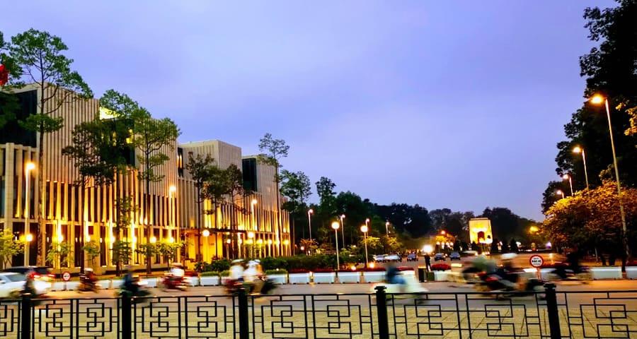 غياب المباني العالية داخل الساحة يمنح المكان أفقا مفتوحا، ويخلق أجواء هادئة تشجع على المشي والتأمل، بعيدا عن ازدحام شوارع هانوي المزدحمة.
