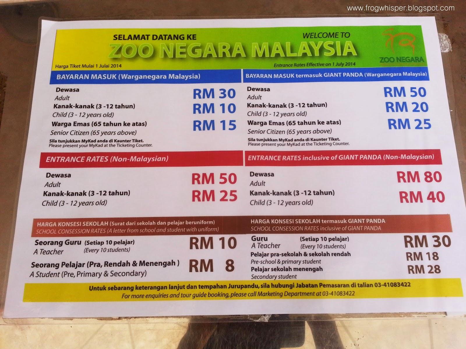 وبالنسبة لأشخاص أكبر من 65 سنة فسعر تذكرة الدخول 16 رينجت ومع عرض الباندا يكون 27 رينجت .