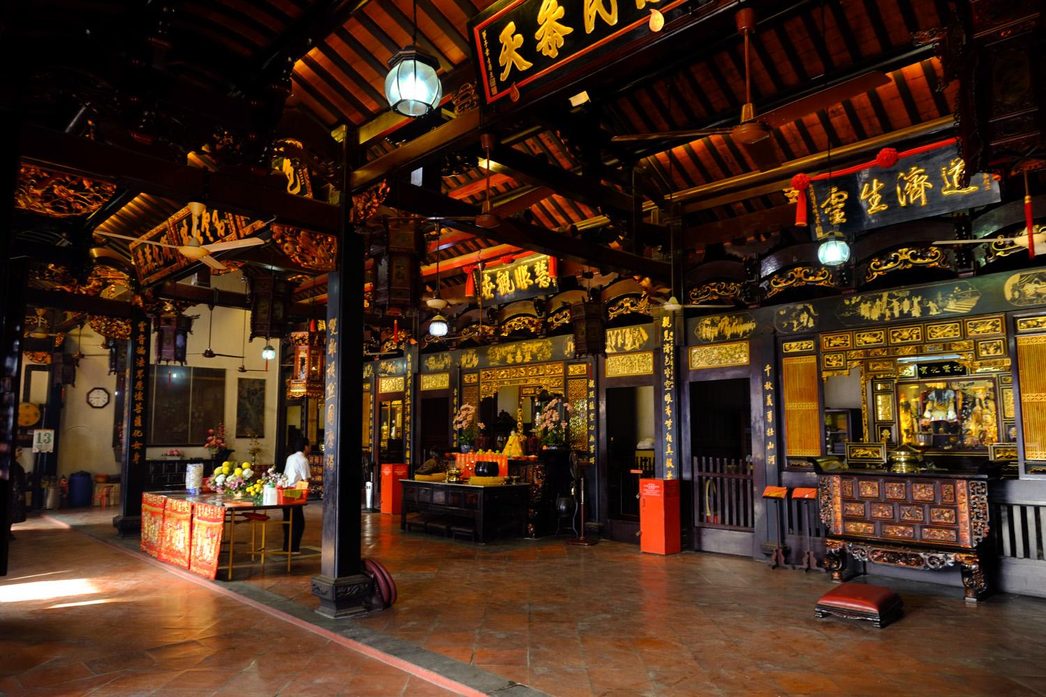ويتزين المعبد بمجموعة من الفوانيس الحمراء الصينية التقليدية، بالإضافة إلى الطاولات التي زينت جوانبها بالنقوش الصينية الجميلة.
