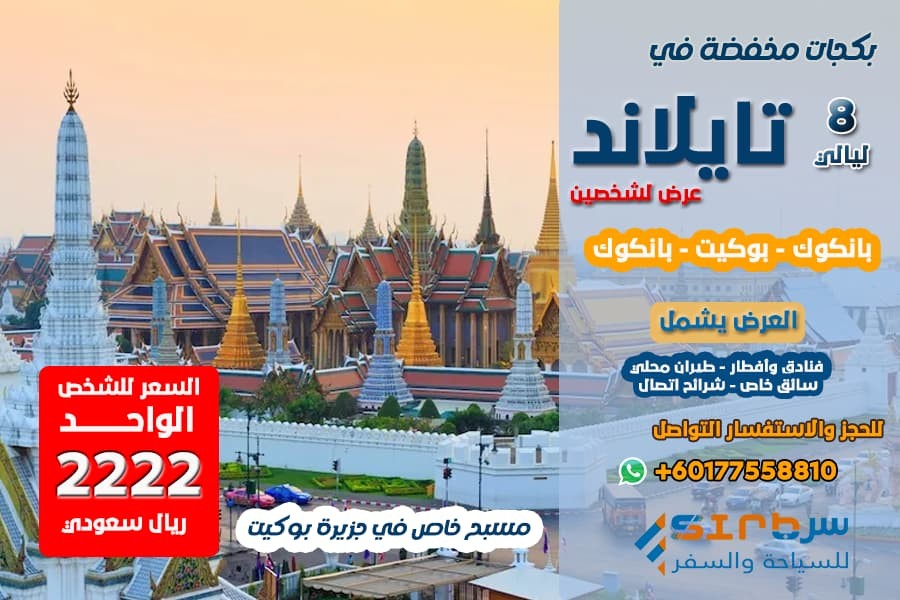 مهما كان هدف رحلتك من السفر الى تايلاند فأنت مصنف عندنا من عشاق تايلاند، لهذا قامت شركة سرب للسياحة والسفر بوضع عروض سياحية خاصة بعشاق تايلاند، وقام فريق متكامل بوضع هذه العروض للتناسب مع المستوى والميزانية.
