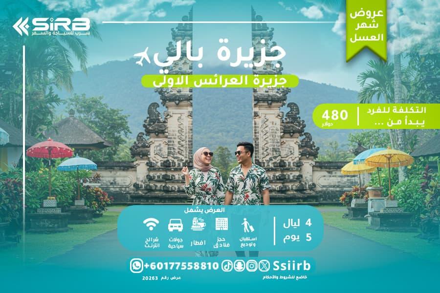 ابدأ رحلتك الزوجية مع عروض بالي شهر العسل لمدة 5 ايام و 4 ليالي من سرب افضل شركة سياحية في بالي ، حيث تنتظركما إقامة مميزة، خدمات راقية، وأجواء رومانسية خالصة.