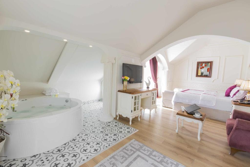 This suite has a balcony, seating area and patio.