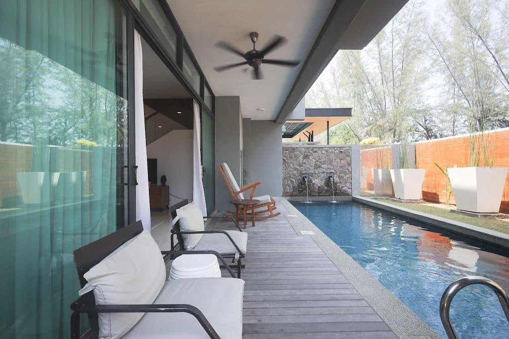 يُعتبر المسبح الخاص ميزة خاصة لهذه الفيلا، وتشمل هذه الفيلا المكيّفة مدخلاً خاصاً وغرفة معيشة واحدة وغرفتي نوم منفصلتين و3 حمّامات مع مقصورة دش وحوض استحمام، في حين يتوفر للضيوف في المطبخ المجهز جيداً موقد سطحي وثلاجة وغسالة صحون وأدوات مطبخ، وتوفر الفيلا الواسعة غسالة ملابس وآلة لتحضير الشاي والقهوة ومنطقة جلوس ومنطقة لتناول الطعام وتلفزيون بشاشة مسطحة مع خدمات البث التدفقي، فيما تحتوي الوحدة على 3 أسرّة.