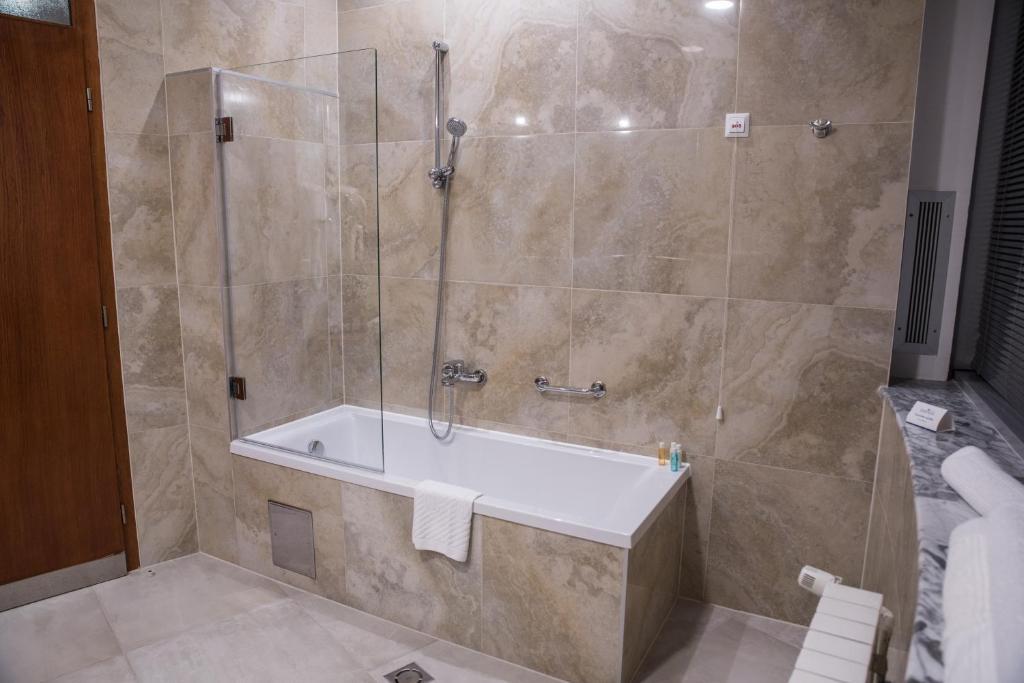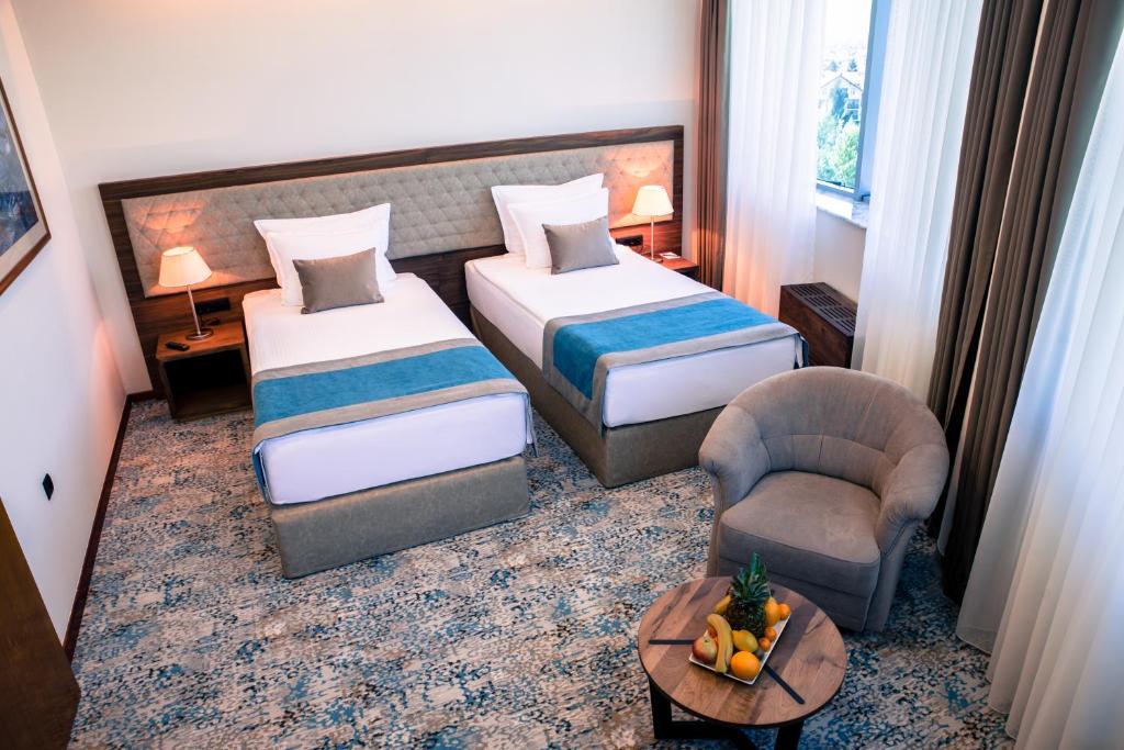 تتميز هذه الغرفة العائلية بإطلالة ورداء حمام وتلفزيون مع قنوات فضائية.