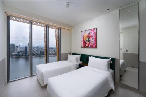 تحتوي هذه الغرفة الثلاثية المكيفة على لوازم استحمام مجانية، وحمام خاص مع دش وبيديه ومجفف شعر. كما تحتوي على تلفزيون بشاشة مسطحة ومدخل خاص وميني بار وخزانة ملابس، بالإضافة إلى إطلالات على النهر. تحتوي الوحدة على 3 أسرّة.يتوفر في حمّامك الخاص: