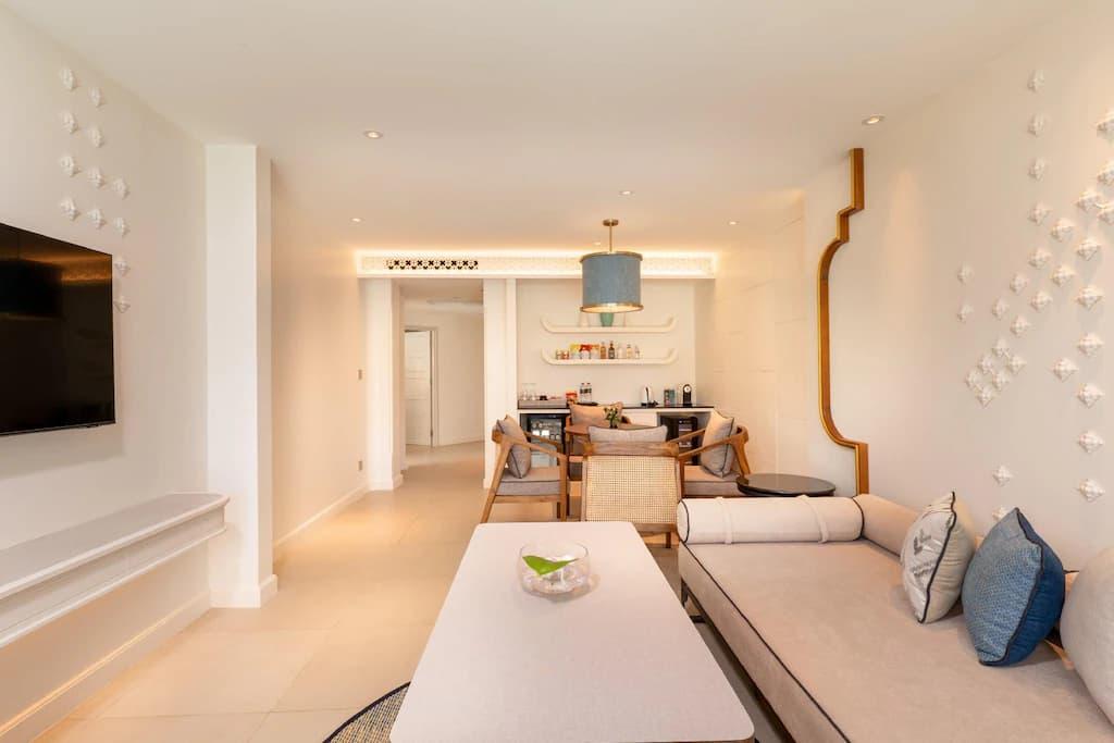 يمكن للضيوف الاستمتاع بتجربة خاصة في هذا الجناح، حيث يوفر مسبحاً يتمتع بإطلالة، ويتكون هذا الجناح الواسع من غرفة معيشة واحدة وغرفة نوم واحدة منفصلة وحمّام واحد مزود بدش ولوازم استحمام مجاناً، كما يوفر هذا الجناح المكيّف أيضاً تراس يتمتع بإطلالات على المسبح وتلفزيون بشاشة مسطحة مع قنوات الكابل، فيما تحتوي الوحدة على سرير واحد.