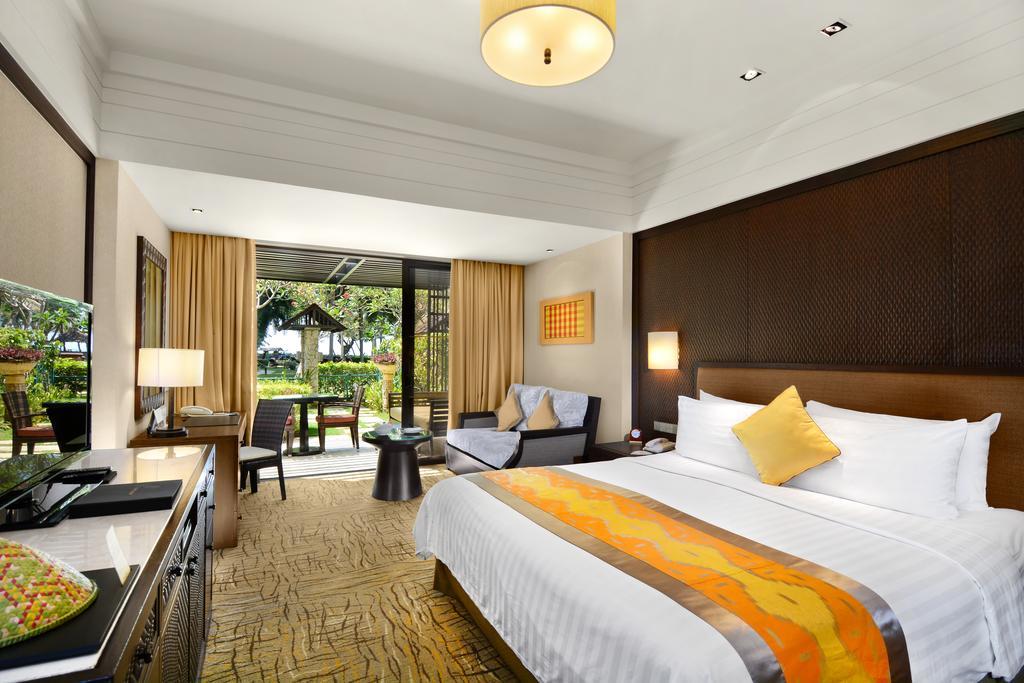 يحتوي الفندق على العديد من الحدائق الواسعة المحاطة بالحدائق الاستوائية والتي تبلغ مساحتها 30 فدان، وهناك أيضا غرف تطل على البحر وأخرى تطل على تلال بينانغ،  وكل غرفة من غرفة الفندق تم تزينيها بالأقمشة ذات الألوان المبهجة والزخارف الخشبية، كما يوجد تليفزيون كبير وثلاجة صغيرة وبار يحتوي على المشروبات الباردة، بالإضافة إلى غلاية كهرباء لعمل جميع المشروبات الساخنة، بالإضافة إلى أن كل غرفة ملحقة بحمام مزود بأحواض الاستحمام وكل مستلزمات العناية الشخصية الجديدة والمجانية.