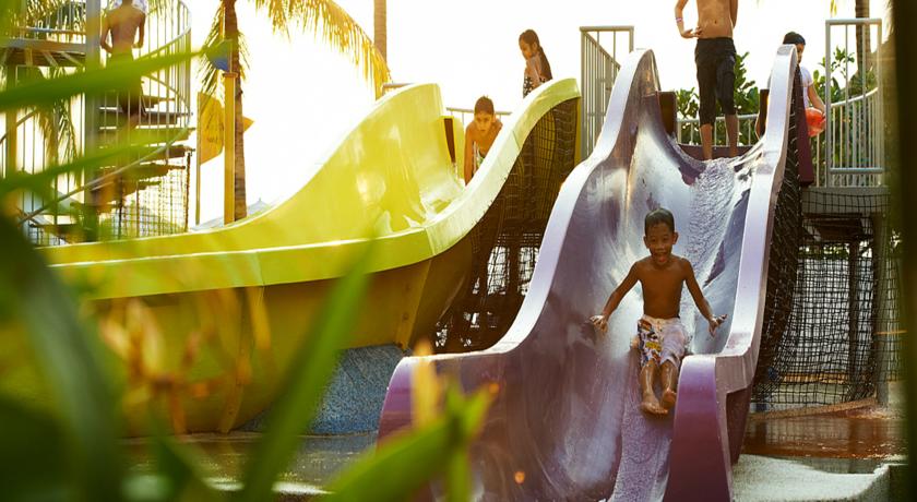 يتميز الفندق بوجود مسبح في الخارج على مساحة كبيرة تصل إلى 2400 متر مربع ويوجد بجواره أماكن مميزة، بالإضافة إلى المنزلقات المائية.