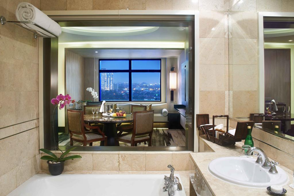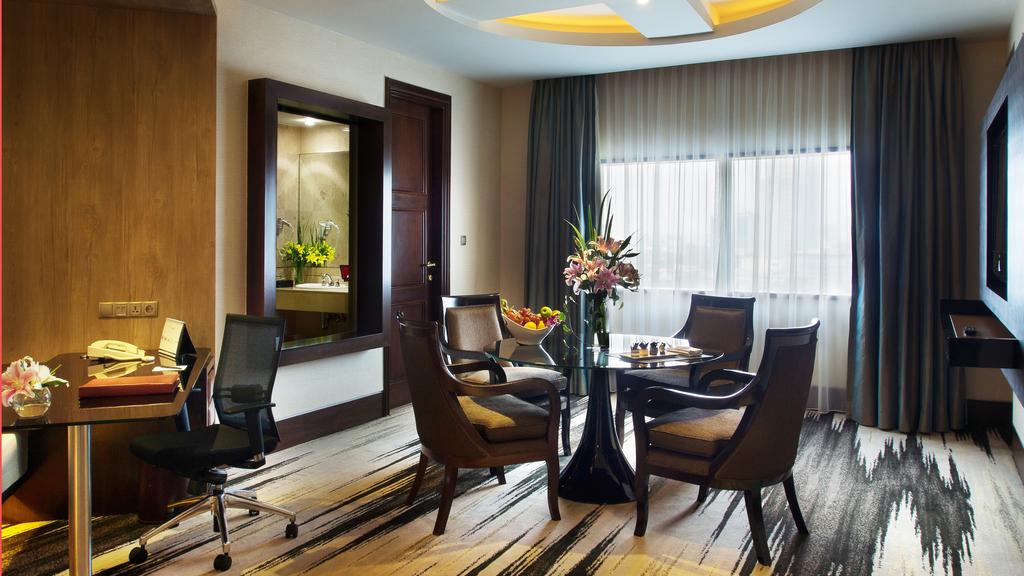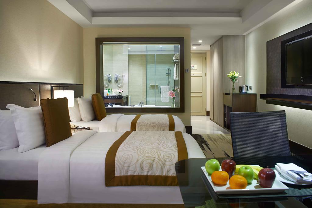 يوجد مطاعم كثيرة بالفندق حيث يوفر الفندق 4 مطاعم تقدم مجموعة متنوعة من الأطباق اليابانية والإندونيسية المحلية والعالمية، كما يقدم الفندق للنزلاء وجبة إفطار من الساعة السادسة حتى الساعة العاشرة صباحا، وتوجد مطاعم تقدم أشهى الأكلات الصينية في المطعم المفتوح طوال اليوم، بالإضافة إلى المشروبات والسوشي والبار المخصص لصنع القهوة، كما يمكنكم تناول المقبلات المتنوعة في استراحة اللوبي.