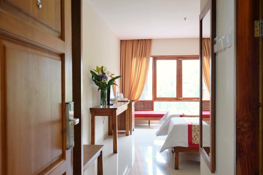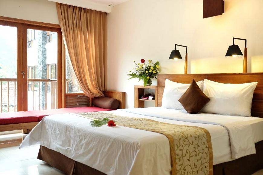 يوجد في فندق جراند هال بونشاك إندونيسيا تسع وثمانون غُرفة فاخرة، بالإضافة إلى ست فيلات، وهي تحتوي على الأثاثات الحديثة من حيث التصميم، وتتميَّز بالألوان الهادئة المتناسقة، كما تتوافر خدمة الواي فاي من أجل التواصل على الإنترنت ومتابعة جميع الاهتمامات الشخصية، كما تحتوي الغرف على أجهزة التلفاز من أجل مشاهدة جميع القنوات على المستوى العالمي من خلال الستالايت، والغُرف مفروشة بأحدث أنواع السجاد والموكيت، كما تتوافر الستائر ذات الألوان المتنوعة في الغُرف، ويوجد جميع اللوازم الخاصة بالنظافة الشخصية في الحمامات الملحقة بالغُرف مثل الشامبوهات والزيوت والكريمات، كما توجد غلايات كهرباء.