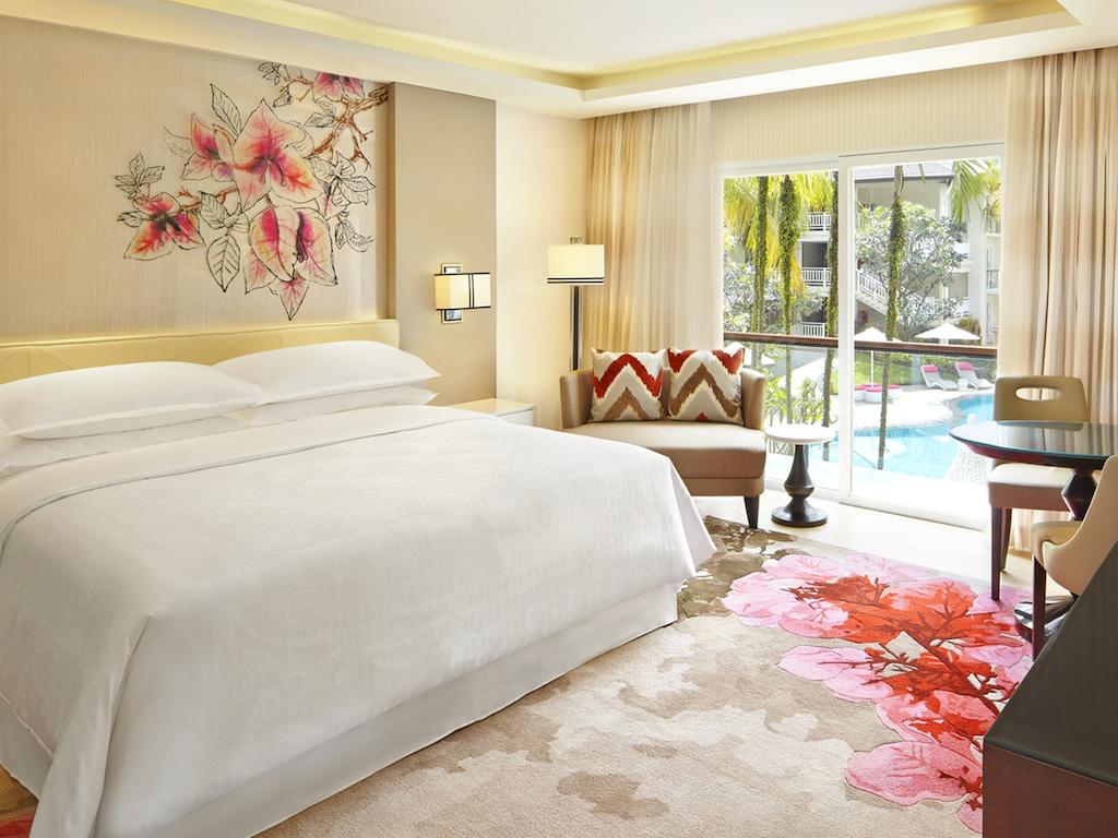 يحتوي فندق شيراتون باندونق إندونيسيا على 156 غرفة تقع في أربعة طوابق وتمتلك جميع الغرف إطلالة مميزة على حمامات السباحة التي يضمها الفندق، كما أن الغرف جميعها تضم خدمات مميزة مثل الإنترنت المجاني ويوجد في كل غرفة شاشة مسطحة وعلى جهاز للاستقبال من أجل استقبال جميع القنوات الفضائية المختلفة، سواء المحلية أو العالمية كما أنه يتوفر جميع الأدوات اللازمة للكي مثل المكواة وطاولة الكي كما يوجد تكييف للهواء ولكل غرفة حمام خاص بها به دش للاستحمام وحوض لغسيل الوجه ويوجد في بعض الغرف حمام إضافي وهاتف في الحمام.