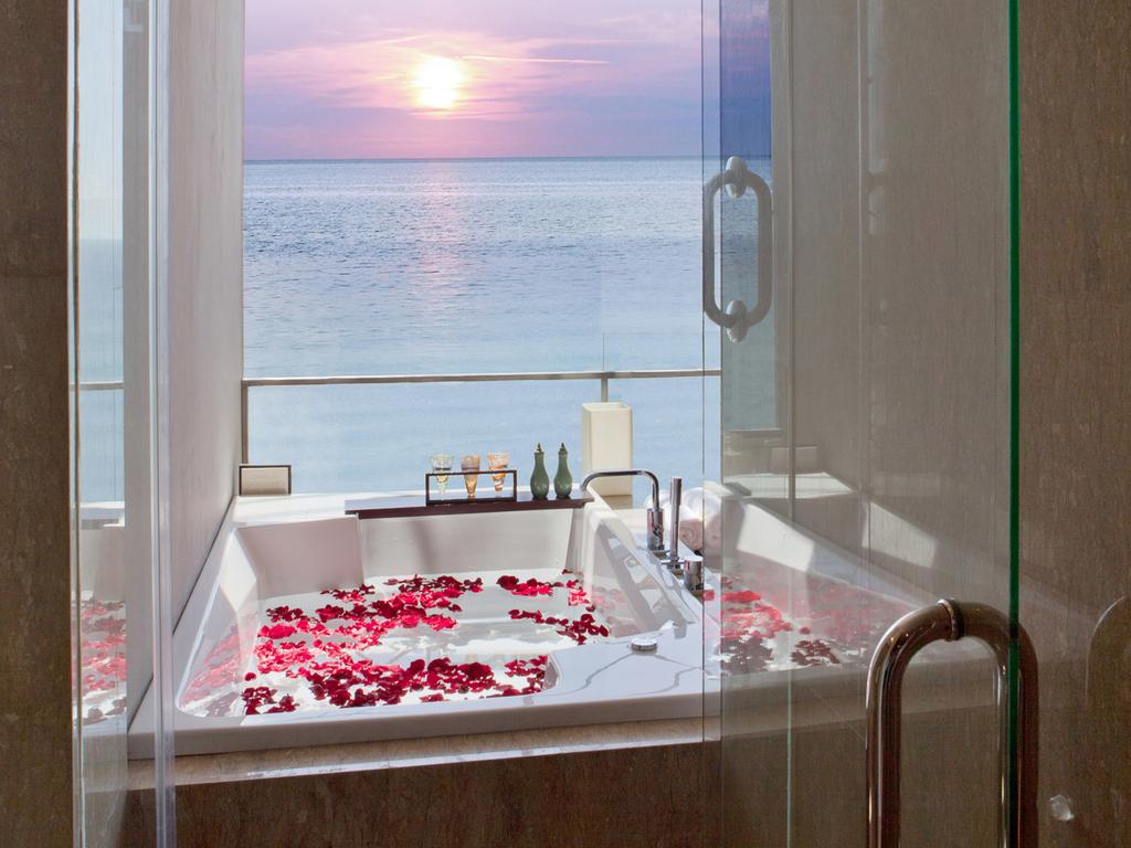 أما عن أماكن الإقامة فهي ساحرة وتوفر إطلالات بانوراميه طبيعية على البحر وهناك غرف أخرى تطل على حمام السباحة ويمكن الخروج منها إلى الحمام مباشرة والغرف جميعها مكيفة ولديها ديكور فاخر وأنيق بالإضافة إلى تلفزيون مسطح وقاعدة للأي بود وهناك خزن شخصية ليحفظ النزلاء ممتلكاتهم الهامة.