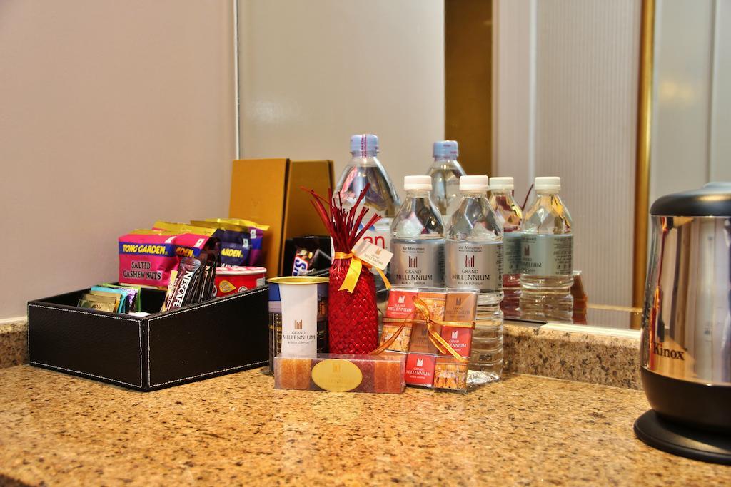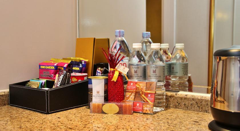 تم تجهيز غرف جراند ميلينيوم الأنيقة والعصرية بآلة صنع الشاي / القهوة. كما يتوفر تلفزيون مع قنوات الكابل ، كما توفر النوافذ الممتدة من الأرض حتى السقف إطلالات جميلة ما جعله من افضل وارخص فنادق في كوالالمبور.