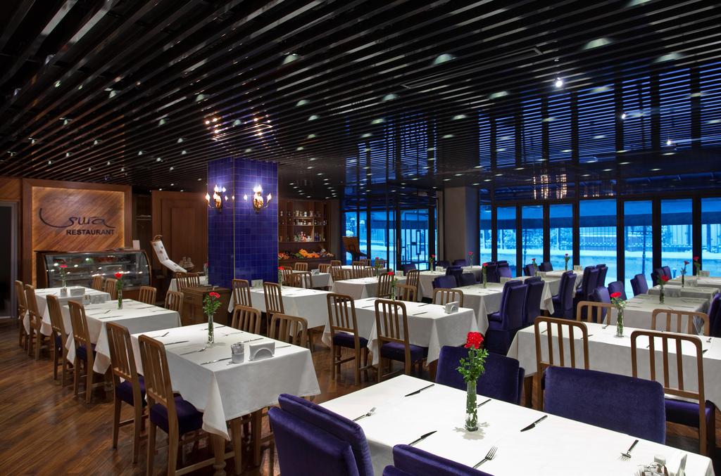 في فندق سورا ديزاين اسطنبول هناك مطعمين يعدان من أفضل مطاعم إسطنبول، منها مطعم Sura Restaurant وهو يقدم تشكيلة من المأكولات المحلية، والتركية، والأوروبية، ويمكن تناول الطعام فيه على نظام البوفيه، أو قائمة الطعام، كما أن هناك مطعم N Terrace Restaurant الذي يقدم تشكيلة من المأكولات الأمريكية، والآسيوية، والاسترالية.