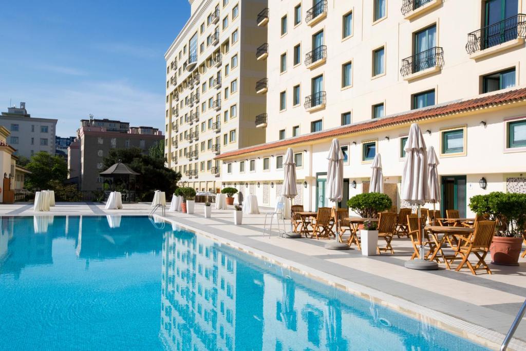 2. يحتوي الفندق على مسابح داخلية وخارجية مع حوض استحمام ساخن.