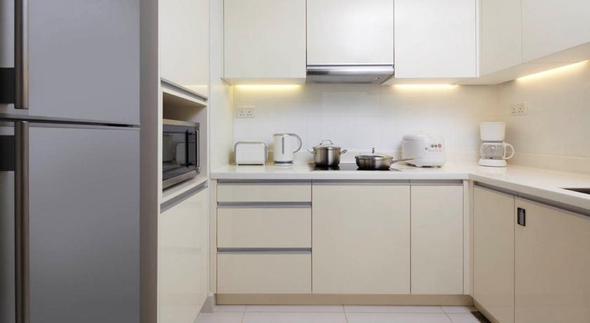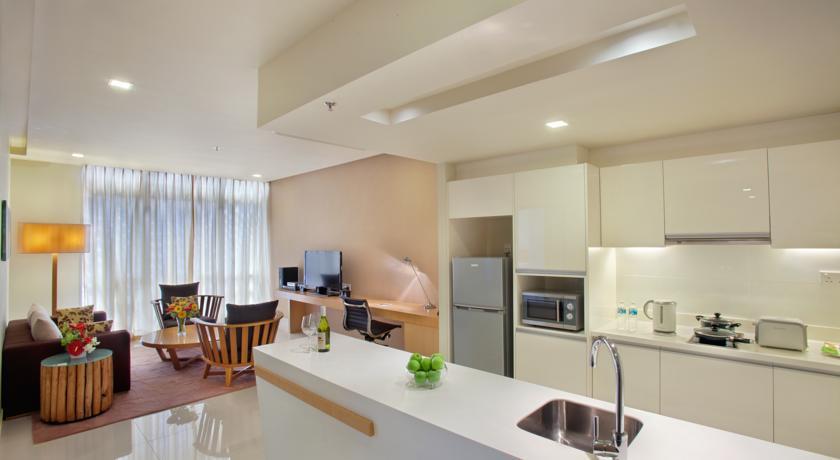تحتوي بعض الغرف على منطقة منفصلة للمعيشة وتناول الطعام ، ويتوفر مطبخ صغير وتلفزيون بشاشة مسطحة مع قنوات فضائية ، كما تحتوي المنشأة على منطقة لعب للأطفال وساونا للبالغين وصالة مع مجلات وطاولة كرة قدم وهي من اجمل شقق مفروشة في كوالالمبور .