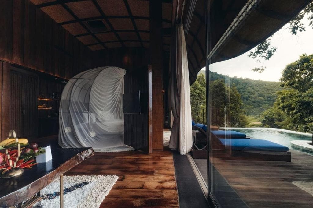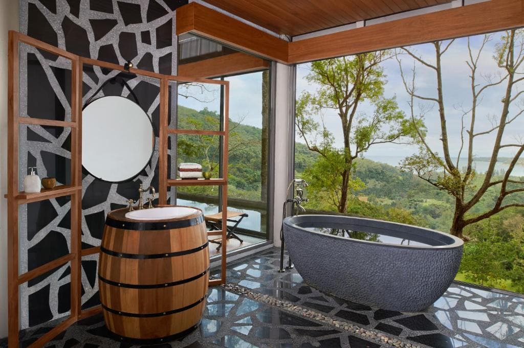 تحتوي جميع غرف الفندق علي مسبح خاص ، مناطق جلوس ، تراس بإطلالات ساحرة على البحر والغابات الكثيفة، كما تضم ميني بار به مجموعة من المشروبات الغازية المجانية. يحتوي الحمام الخاص الداخلي علي جميع لوازم الاستحمام المجانية وحوض استحمام.