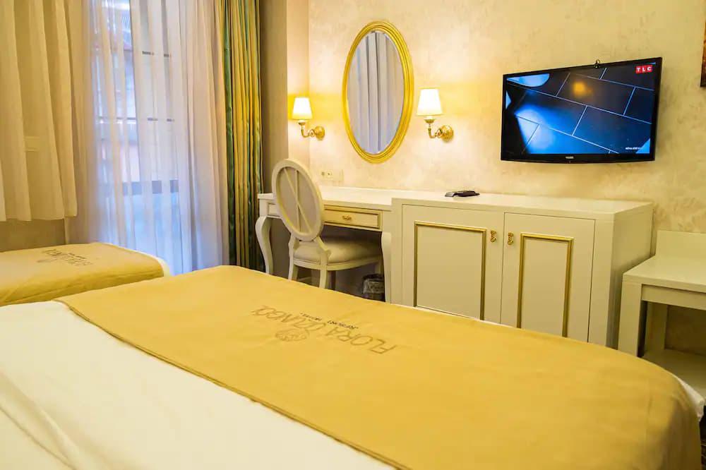 تحتوي غرف الفندق علي تلفزيون بشاشة مسطحة مع قنوات فضائية، وشرفة وميني بار. كما تضم حمام خاص مزود بدش ومجفف الشعر.