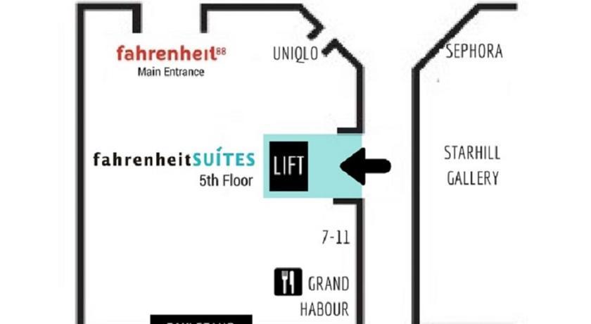يتمتع فندق أجنحة فهرنهايت كوالالمبور بموقع مركزي داخل منطقة المثلث الذهبي في قلب كوالالمبور ، حيث يقع فوق مول فهرنهايت 88 مباشرة ومقابل بافيليون كوالا لمبور مباشرة .كما أنه يتمتع بموقع استراتيجي في جالان بوكيت بينتانج والذي يضم علامات تجارية راقية ومجموعة متنوعة من المطاعم والعديد من منافذ الترفيه.