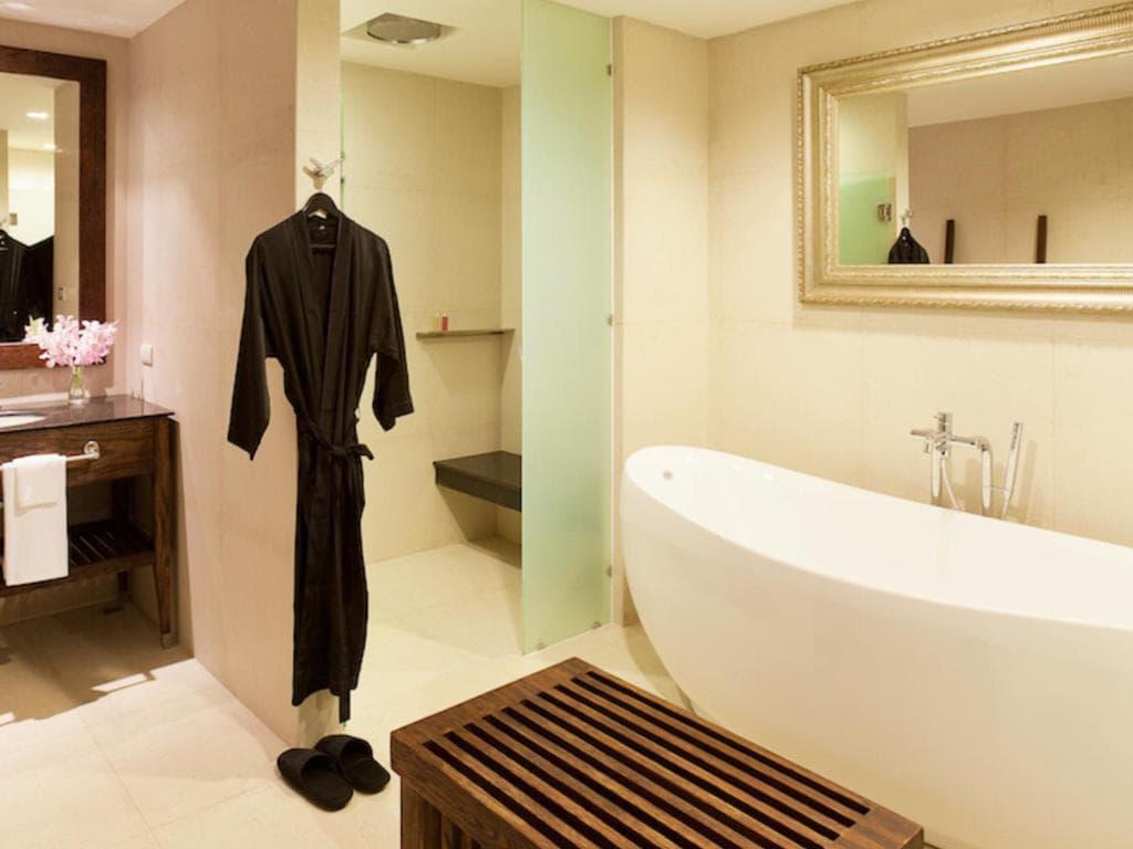 تتميز غرف مكان الإقامة بتصميمات أنيقة مع أبواب زجاجية تمتد من الأرض حتى السقف، كما تحتوي على تكييف وتلفزيون بشاشة مسطحة مع قنوات وميني بار. يضم الحمام الداخلي الخاص على مرافق دش ونعال ولوازم استحمام مجانية، فيما تتميز معظم الوحدات بحوض سبا ومرافق صنع الشاي/القهوة.