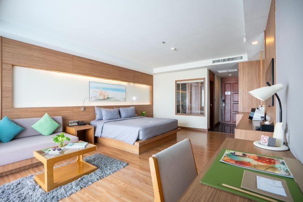 تحتوي غرف المنتجع علي تصميمات وديكورات داخلية أنيقة مع أبواب زجاجية تمتد من الأرض حتى السقف، كما تحتوي على تكييف وجهاز تلفزيون بشاشة مسطحة مع قنوات عالمية وميني بار. يضم الحمام الخاص على مرافق دش و نعال ولوازم استحمام مجانية، فيما تتوفر في الأجنحة حوض سبا ومرافق صنع الشاي/القهوة.