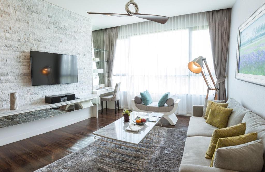 تحتوي غرف المنتجع علي جهاز تلفزيون بشاشة مسطحة مع قنوات فضائية ومشغلات دي في دي وقاعدة للآيبود، وتضم بعض الغرف منطقة للجلوس للاسترخاء ، وتوفر بعض الوحدات إطلالات رائعة على الجبل أو البحيرة.يضم الحمام الخاص حوض استحمام و أردية حمام ونعال.