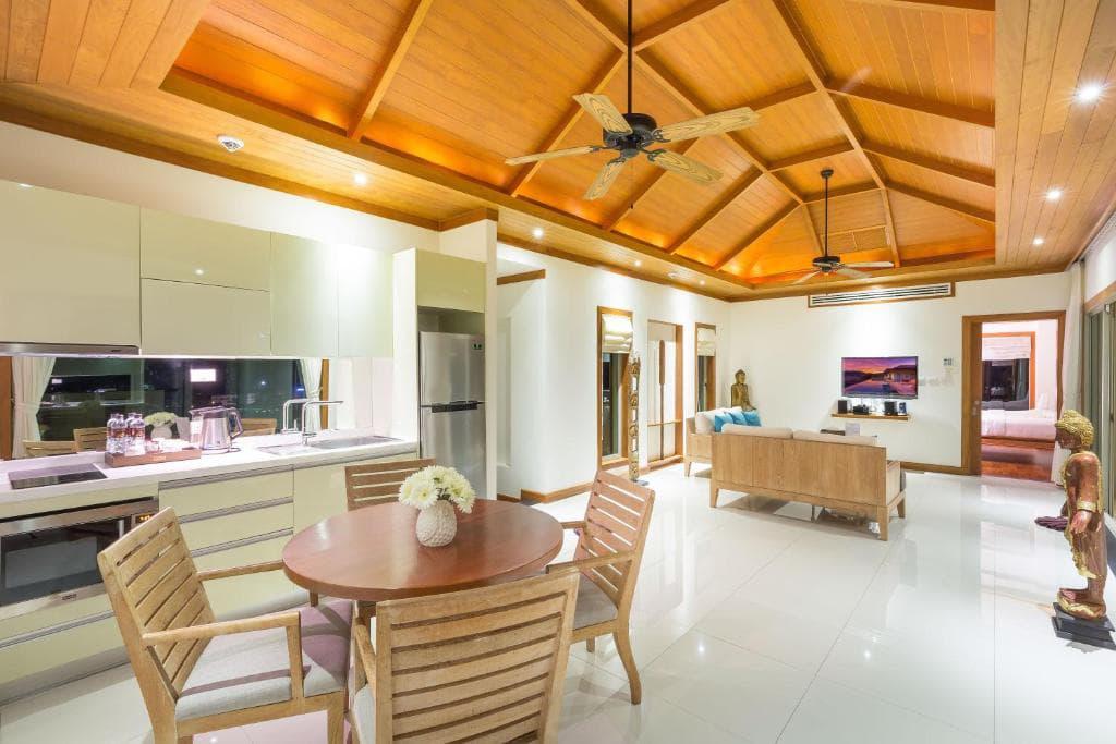 يضم المطبخ الحديث المجهز على فرن وميكروويف. وتضم الحمام على حوض استحمام ونوافذ زجاجية مطلة على بحر اندامان.
