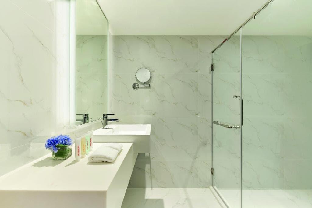 تحتوي غرف الفندق علي جهاز تلفزيون شاشة مسطحة إل إي دي بشاشة مسطحة ومكتب عمل وميني بار وآلة صنع الشاي / القهوة. وتتوفر أيضاً خزينة في الغرفة . كما يضم الحمام الخاص الداخلي على مجفف شعر وحوض استحمام أو دش وأردية حمام ونعال.