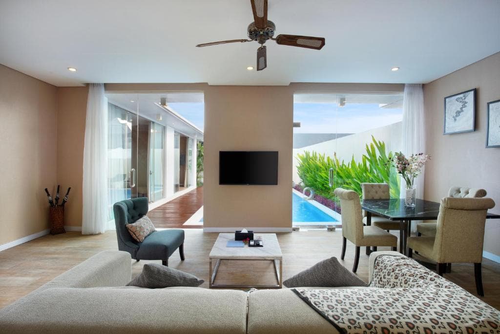 يقع The Grand Daha، A Luxury Resort & Spa في منطقة سيمينياك ،وهو من افضل فنادق بالي لشهر العسل ، حيث توفر جميع الوحدات إطلالات على المسبح ومجهزة بتكييف وأرضيات خشبية وحمام خاص وتلفزيون بشاشة مسطحة وخدمة الواي فاي المجانية ومكتب وغرفة معيشة ومطبخ مجهز وفناء. كما تشتمل جميع الغرف على منطقة صالة وتناول الطعام.