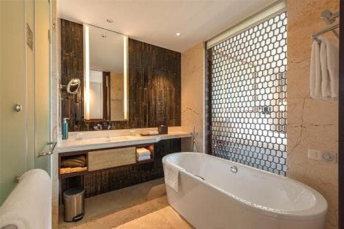 تحتوي غرف فندق Hilton Da Nang على تكييف ومكتب وغلاية وميني بار وخزنة وتلفاز بشاشة مسطحة وحمام خاص مزود ببيديه. جميع الغرف تشمل بياضات أسرة ومناشف.