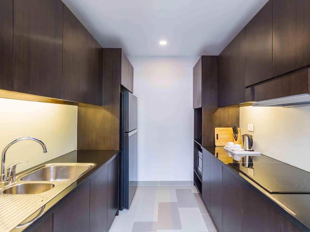 تتميز الفلل بطابع يجمع بين الفخامة والرحابة، حيث تضم مساحات معيشية أنيقة ومنطقة طعام مستقلة مع مطبخ صغير مجهّز وفرن لتوفير أجواء منزلية راقية.