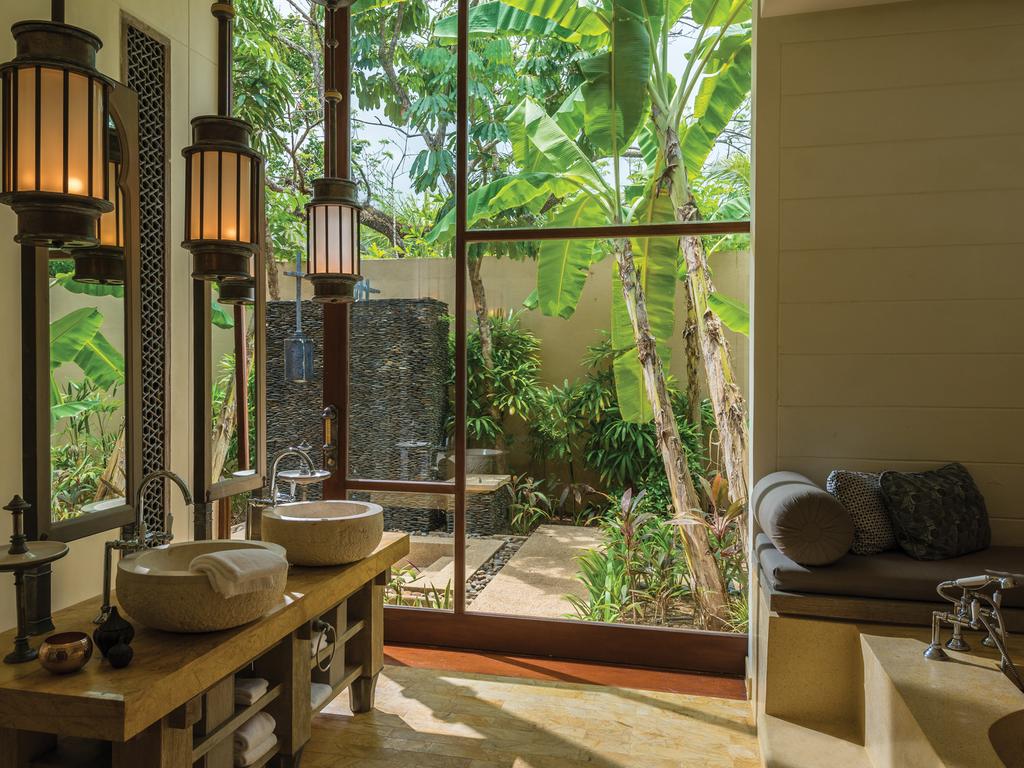 صممت غرف وفلل منتجع و فندق الفور سيزن لنكاوي ماليزيا بمزيج هائل من التصميم المعماري الماليزي القديم والتصميم المعماري المغربي، بالإضافة إلى وجود كافة وسائل الراحة العصرية الحديثة من تليفزيونات بشاشات مسطحة، وقواعد للآيبود.
