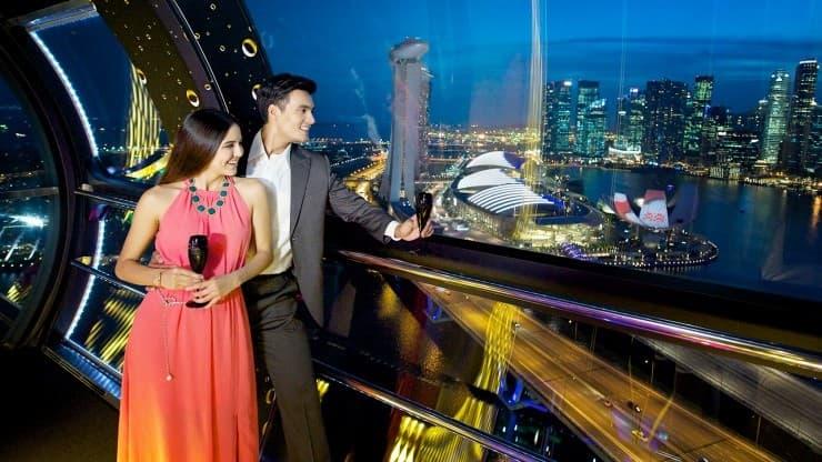 إن سنغافورة فلاير عجلة مراقبة عملاقة بطول 165 مترا تجلس على منصة تجارية مكونة من ثلاثة طوابق بمساحة مساحة 82.000 قدم مربع وأتريوم مركزي مع غابات مطيرة آسيوية وخصائص مائية، بالاضافة إلي المسرح اليوناني في الهواء الطلق للعروض الحية والأحداث مما يجعل سنغافورة فلاير وجهة يجب زيارتها أثناء زيارتك لسنغافورة.