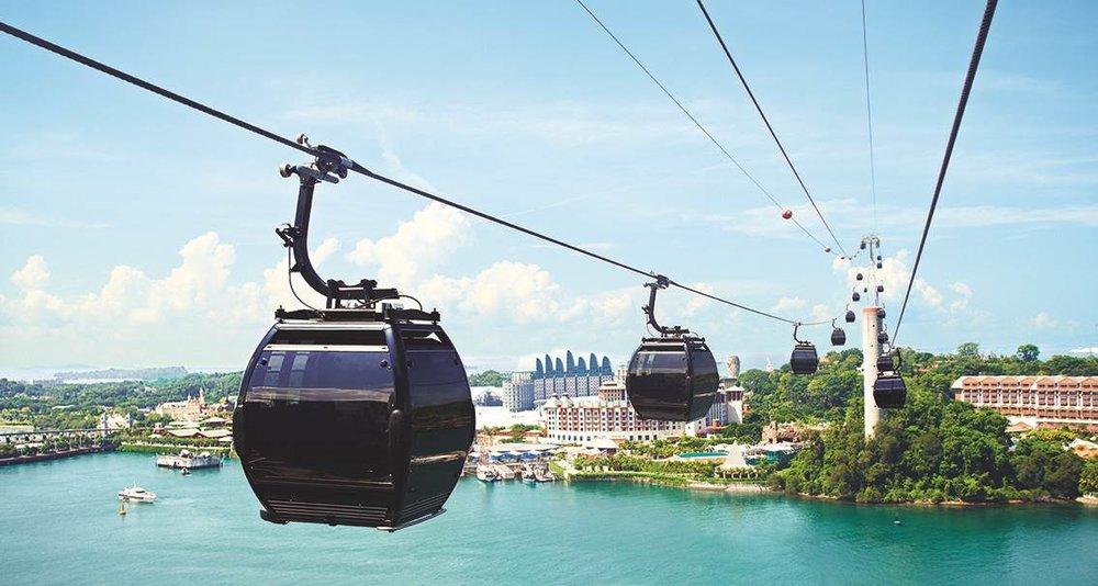 فنظام تلفريك سنغافورة يربط جبل فابر إلى جزيرة سنتوسا، وهي طريقة رائعة لرؤية الجزيرة والوصول إلى مجمع الطعام والترفيه التي تحتل الآن ذروتها.