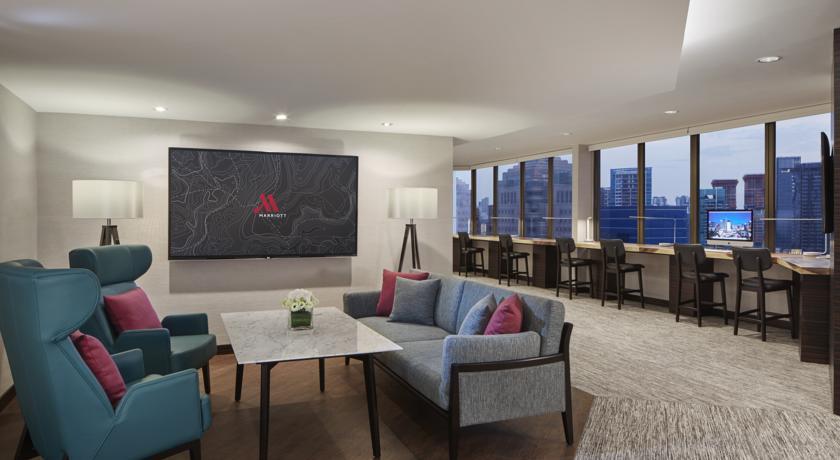 تتضمَّن الغُرف الموجودة في فندق الماريوت الكثير من قطع الأثاث الفاخرة، التي تتميَّز بالتصميم الحديث وكذلك الألوان المبهرة، حيث إنه تم استيرادها من أفخم شركات الأثاث العالمية، وتحتوي الغرف على شاشات التلفاز الكبيرة عالية الجرافيكس، وتوجد خدمة "الواي فاي" اللا سلكي في مختلف أرجاء فندق الماريوت.