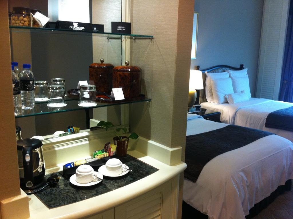 تحتوي الغرف في فندق جيه دبليو ماريوت على جهاز تلفاز بشاشة مسطحة مع قنوات الكابل ومرافق صنع الشاي والقهوة . يضم الحمام الرخامي الخاص مع حوض استحمام علي الطراز الياباني ودش منفصل. يتم توفير مجموعة أدوات الأسنان ولوازم الاستحمام. تحتوي بعض الغرف على مناطق منفصلة للمعيشة وتناول الطعام ما جعله من أشهر فنادق ينصح بها في كوالالمبور.