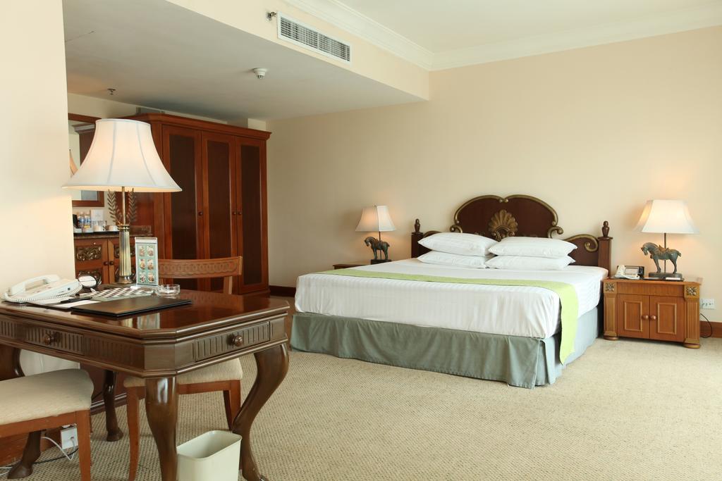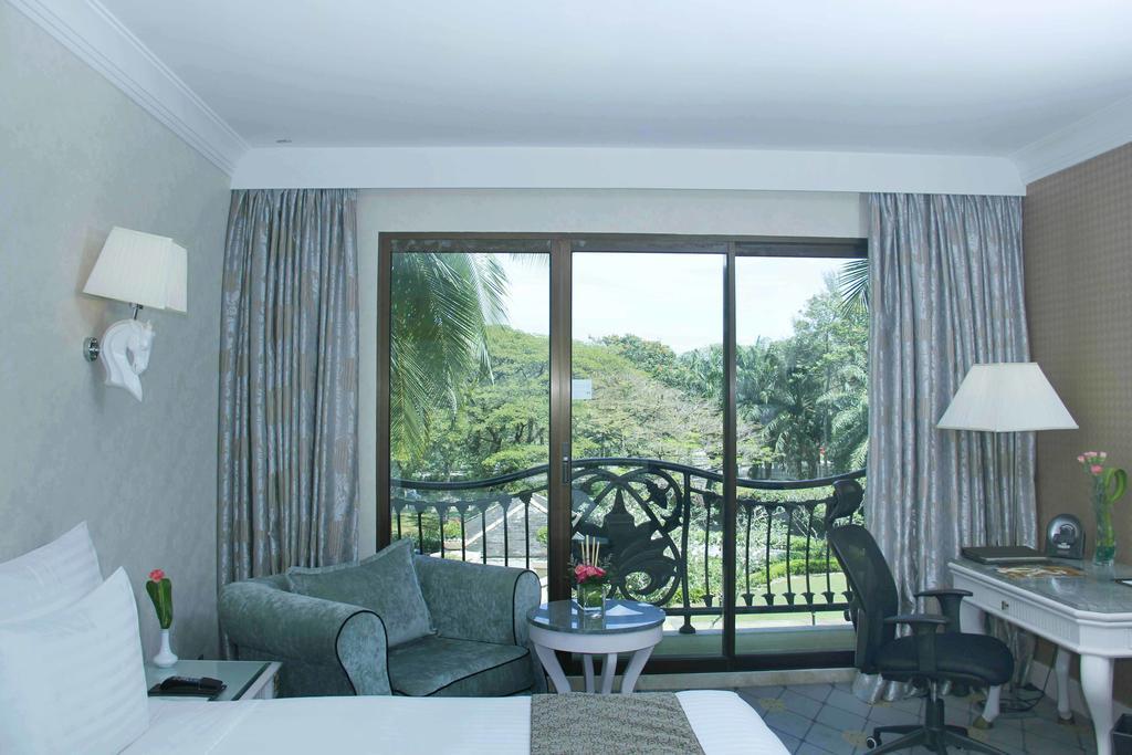 يحتوي الفندق على 480 غرفة ذات شرفات مطلة على البحيرة والبعض مطلة على الحديقة، و هناك بعض الغرف المطلة على مباني المدينة.