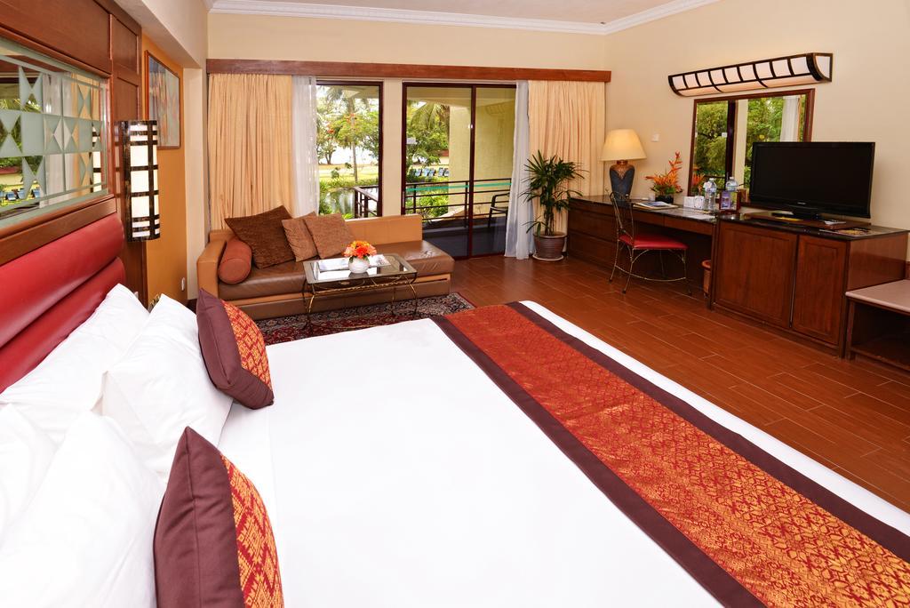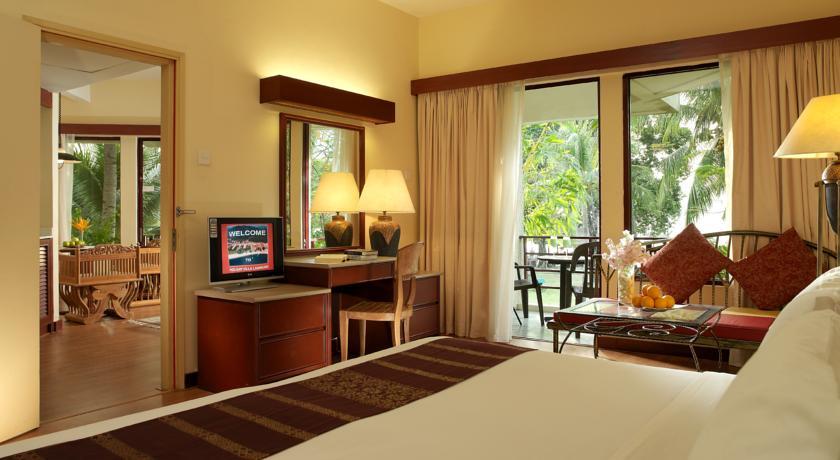والغرف فندق هوليدي فيلا بيتش لنكاوي ماليزيا أرضياتها من البلاط المميزوبعضها خشبية، وستجدها تحتوى على مكيف هواء وبعضها مراوح، وتليفزيون يضم كافة القنوات الفضائية، وحمام خاص به حوض استحمام كبير مزود بكافة لوازم الاستحمام المجانية.