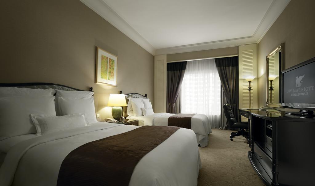 تحتوي الغرف في فندق جيه دبليو ماريوت على جهاز تلفاز بشاشة مسطحة مع قنوات الكابل ومرافق صنع الشاي والقهوة . يضم الحمام الرخامي الخاص مع حوض استحمام علي الطراز الياباني ودش منفصل. يتم توفير مجموعة أدوات الأسنان ولوازم الاستحمام. تحتوي بعض الغرف على مناطق منفصلة للمعيشة وتناول الطعام ما جعله من أشهر فنادق ينصح بها في كوالالمبور.