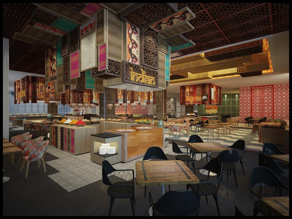 5. يتم تقديم بوفيه الإفطار في Amaya Food Gallery، مع خيارات تشمل الأطباق الآسيوية والعالمية.