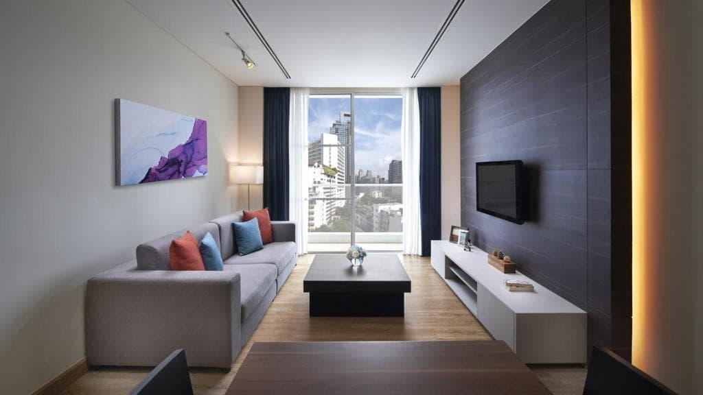 تتميز الشقق ذات الخدمة الذاتية في فندق شاما سوخومفيت بانكوك بأعمال فنية وألوان محايدة جميلة، بالإضافة إلى أنه تحتوي مناطق الصالة المريحة على أريكة وتلفزيون بشاشة مسطحة مع قنوات الكابل ومشغل دي في دي.