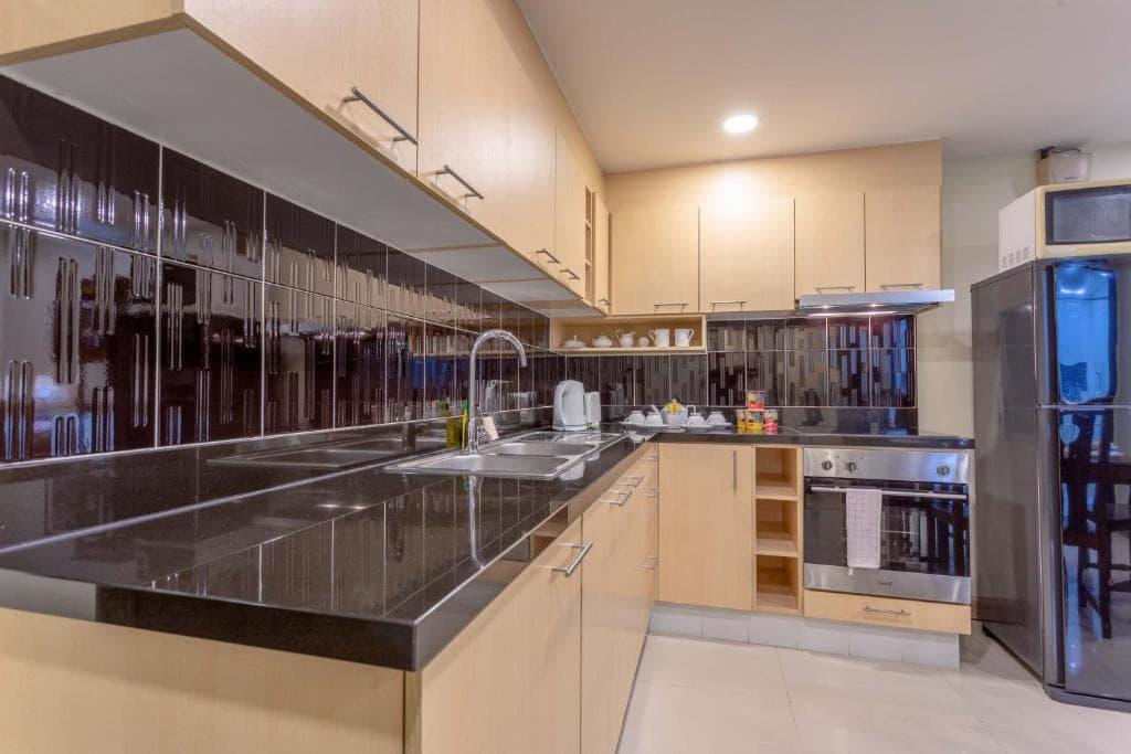 تشتمل الشقق المكيفة بمنطقة جلوس مع تلفزيون بشاشة مسطحة أتش دي 42 بوصة وأريكة جلدية . تتوفر طاولة لتناول الطعام. كما يأتي المطبخ مع فرن وموقد سيراميكي مؤلف من 4 منافذ بالإضافة إلي الميكروويف وأدوات المطبخ.