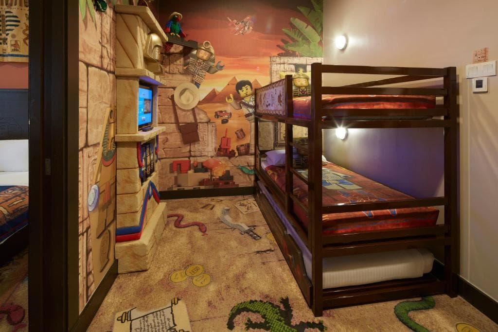 تتميز غرف فندق ليغولاند بتصميم رائع تشمل تصاميم المملكة والقرصان ، كما تحتوي الغرف على أريكة وتلفزيون بشاش مسطحة وميني بار وغلاية كهربائية. يتوفر حمام خاص داخلي مزود بمجفف للشعر.